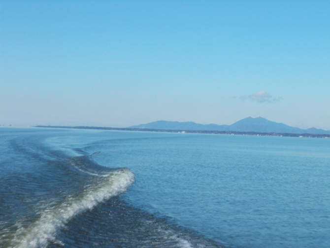 日本列島が高気圧に覆われ、冬晴れの天候で出航した。湖上から宝匡山、筑波山、加波山、吾国山、足尾山、難台山、愛宕山などが鮮明に眺められた。見た目の湖水は薄茶だが、透明度は湖心と牛渡沖で1mと良い。これは、12月に入って雨が少なく河川からの泥水の流入がないこと、強風が吹かず底泥の巻き上げ(再懸濁)がないこと、水温が7℃台に低下し、日照時間も短いことで、植物プランクトンの増殖が抑えられたこと、捕食者のワカサギが少ないために、12月でもカブトミジンコとワムシ類が多く、植物プランクトンを摂食していることによると見られる。顕微鏡計数でも、植物プランクトンは少なく、カブトミジンコとワムシ類が多いことで裏付けられた。